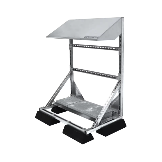 De PVshelter Angled is een vrijstaand montageframe voor omvormers tot 130 cm breed. Het heeft een handig scharnierend dak voor snelle en veilige toegang tijdens installatie en onderhoud. Gemaakt van duurzaam Magnelis-staal en windgecertificeerd voor betrouwbare prestaties op het dak.