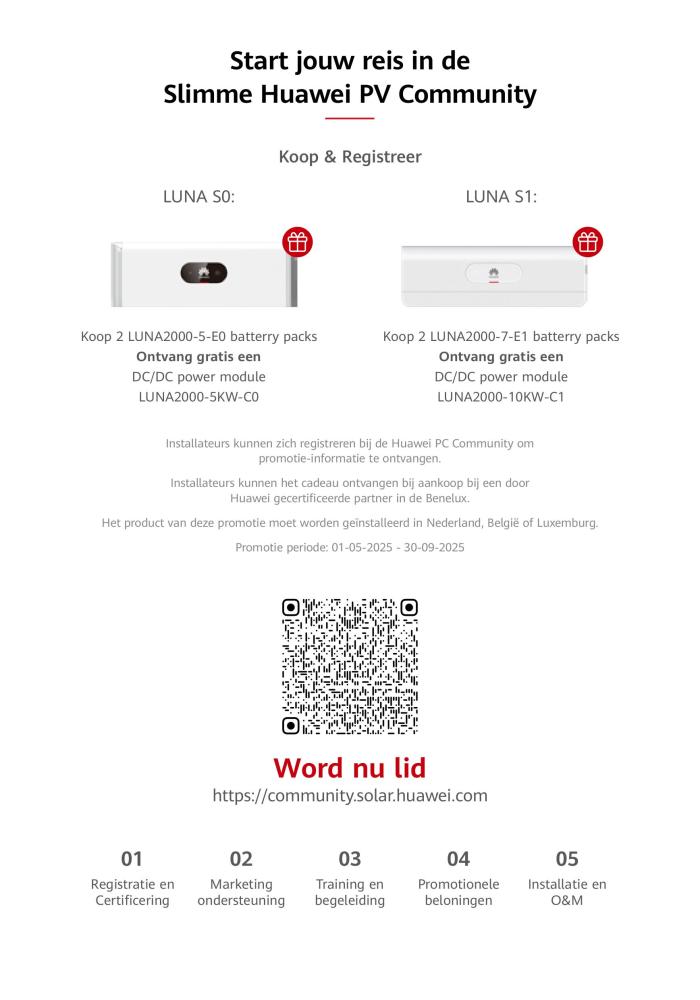 De LUNA S1 thuisbatterij van Huawei is een slim, modulair opslagsysteem voor zowel nieuwe als bestaande zonne-installaties. Met capaciteiten van 7 tot 21 kWh biedt het flexibele gebruiksmodi zoals back-up, zelfverbruik en piek-dalverschuiving. Dankzij geavanceerde veiligheidsfuncties, waaronder vijflaagse bescherming en IP66-certificering, levert het systeem betrouwbare prestaties, zelfs onder extreme omstandigheden.